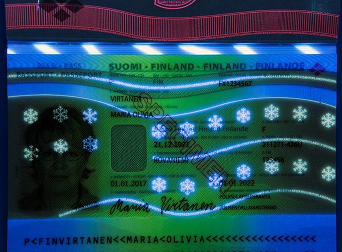 But that’s far from the whole story. The new passport design is a work of art. It has been created in cooperation with the Finnish Police, the Finnish Immigration Service, the Border Guards, the Population Register Center, and the Ministry of Foreign Affairs; and Thales’ security design team. Notable features include visual representations of Lapland scenery and Finland’s national bird, the whooper swan. Under UV light, images of the Northern Lights and a snowflake appear. Source: Thales Group